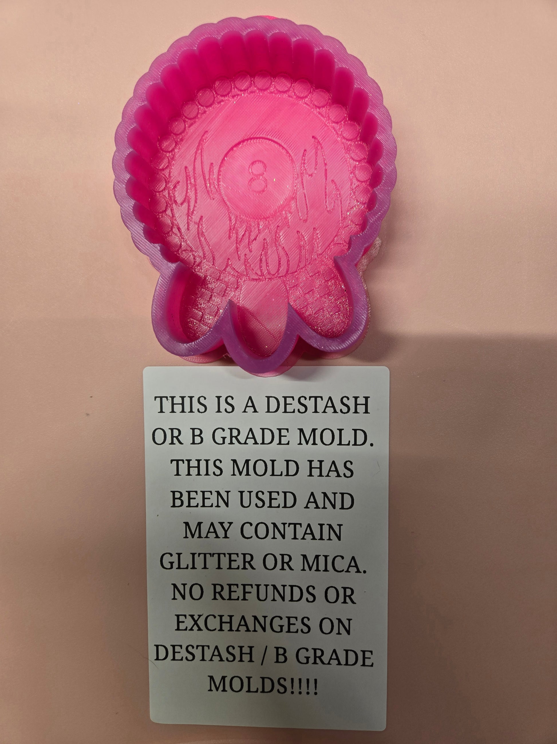 DESTASH MOLDS HAVE BEEN USED. THEY MAY COME DISCOLORED, UNWASHED, ETC. THERE ARE ABSOLUTELY NO REFUNDS ON DESTASH ITEMS.