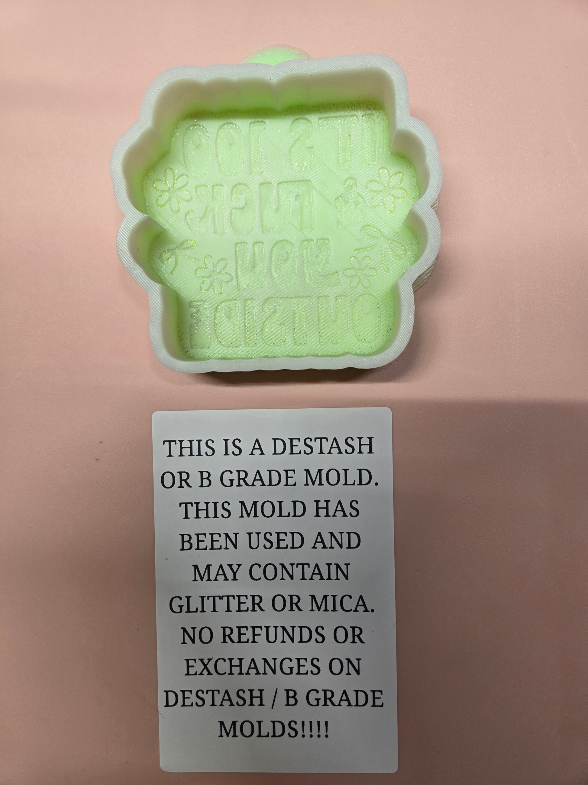 DESTASH MOLDS HAVE BEEN USED. THEY MAY COME DISCOLORED, UNWASHED, ETC. THERE ARE ABSOLUTELY NO REFUNDS ON DESTASH ITEMS.